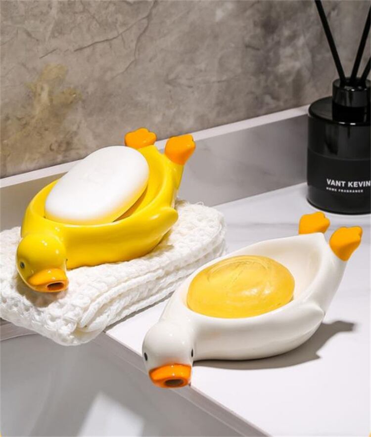 装飾品 石鹸ケース アヒル 振り子 大人気 浴室 収納 洗面台 水が溜まらない 水を切る石鹸皿