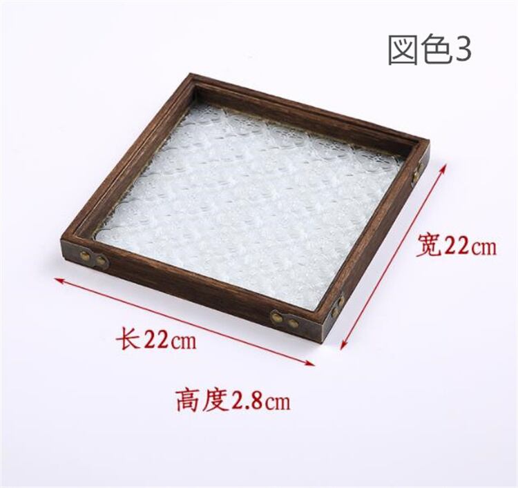 ガラストレイ 無垢材 長方形 ティーカップ 収納トレイ 家庭用 果物 ケーキ スナック 新品 レトロ
