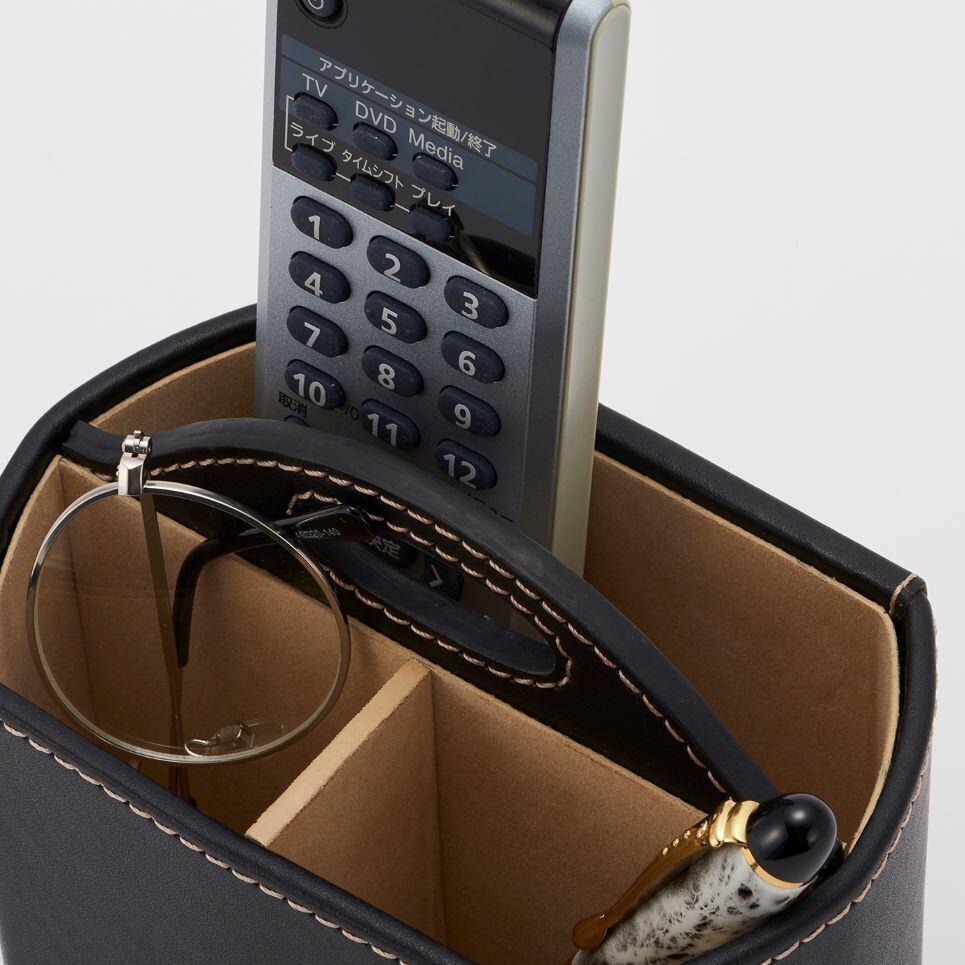 リモコンやペン、メガネなど卓上アイテムを納めるのにピッタリです。