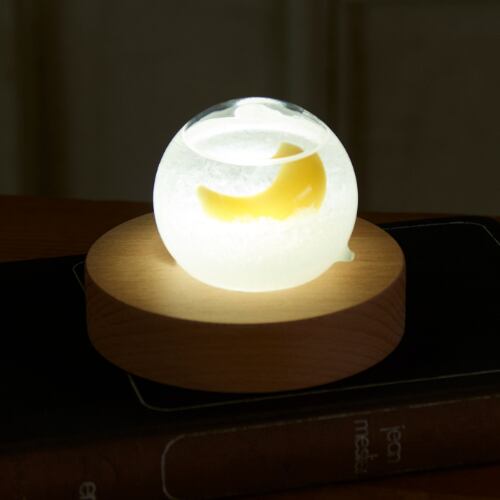 別売のLEDライトベースに乗せてライトアップするとまた異なった表情を見せてくれる癒しのインテリアオブジェ。