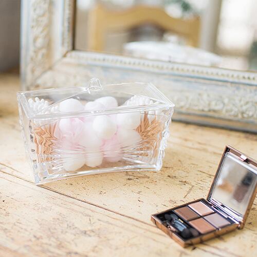 コットンや綿棒等のコスメグッズ等も素敵なケースに収めてをインテリアのオブジェ風に。