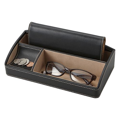 帰宅後ポケットの中身を入れるだけの簡単収納。長財布やスマートフォン、小銭やメガネなどなどお預かりいたします。