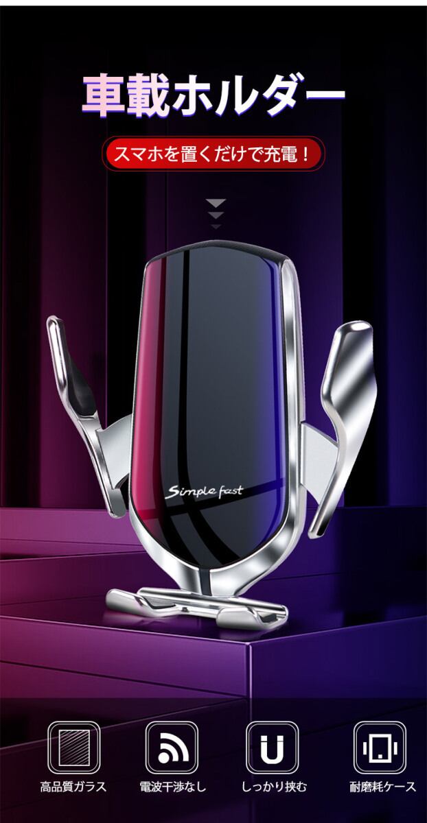 【強力な補強】最新の滑り止め設計により、エアコンの排気口にしっかりと固定できます。クリップ式で強力に固定するカーホルダー設計により運転中の落下を防ぎ、運転の安全性を保護します。【静音動作設計】カーホルダーは静音性に優れ、凹凸のある道路でも揺れによる衝突がなく、設置した機器の安全性を高めると共に雑音の発生も防ぎます。【多層保護】底面と側面はシリコン製の柔らかいクッションでできており、ひっかき傷などを作ることがありません。【赤外線センサースイッチ】スイッチは片手で操作でき、スマホの設置と取り外しが簡単。360度回転でき、いつでも快適な角度に調整して運転できます。【複数のモデルをサポート】10Wの高速充電。iPhone12/12mini/12 Pro/iPhone11 Pro Max/iPhone11/iPhone XS/7plus/8plus/各社Android端末など幅広く対応しております。【Qi急速充電】付属のType-C USBケーブルにより、QC2.0/3.0に対応するUSBカーチャージャーと接続することで、急速充電可能。カラー:シルバー・ブラック・ゴールド パッケージの内容 :Qiワイヤレスカーチャージャー* 1、Type-C、Micro USB、iPhone端子各1個、Type-c充電ケーブル*1