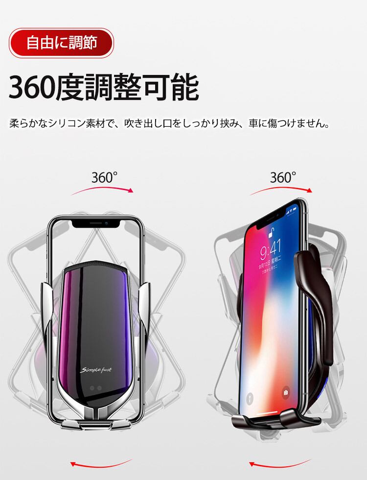 スマホホルダー センサー 自動開閉 360度回転 ワイヤレス 充電 急速充電 高品質 人感知センサー 自動 置く