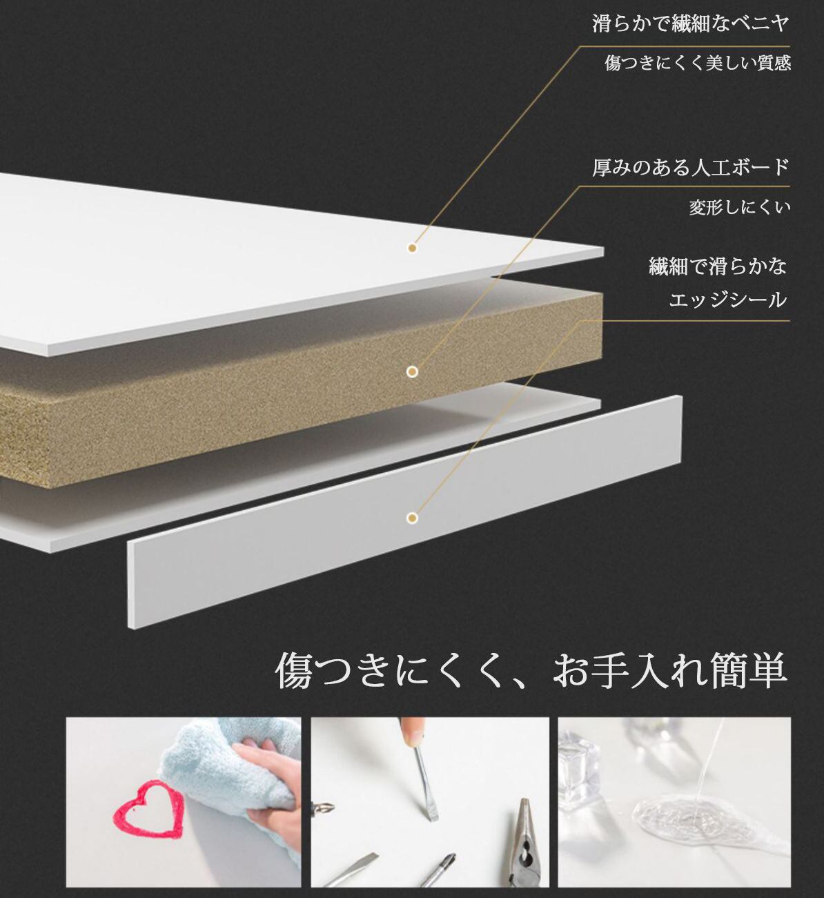 ・インテリアに馴染むホワイト天板と鉄製フレームの調和がお洒落です。
