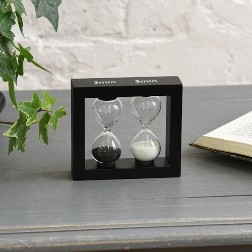 美しいフォルムが特徴。時の流れを砂と共に感じます。3分、5分計