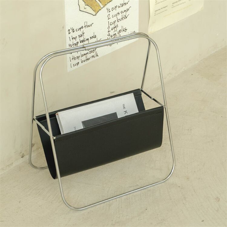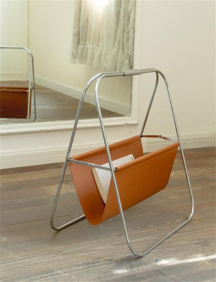 携帯型ブックスタンド 折り畳み書籍棚 物置棚 新聞収納 金属 皮質雑誌棚 着地本棚