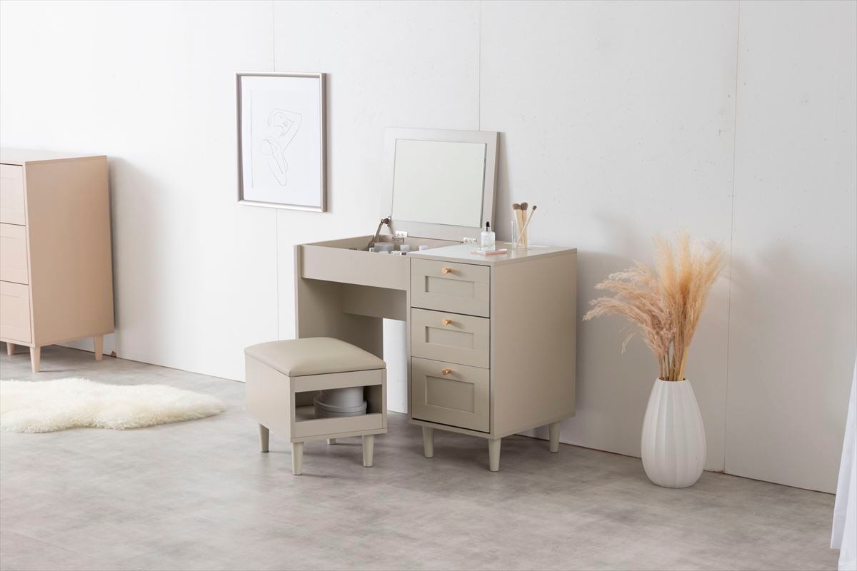 品のある框デザインと柔らかなニュアンスカラーが印象的な『Calan』シリーズのドレッサーデスク